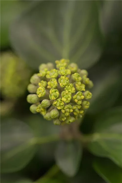 Die gelb-grünen Blüten des Strauch-Efeu 'Arborescens' erscheinen in Dolden von September bis Oktober.