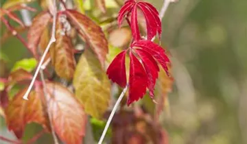 Besonders dekorativ sind die blauen Früchte von Parthenocissus quinquefolia 'Engelmannii'. Diese erscheinen ab September.
