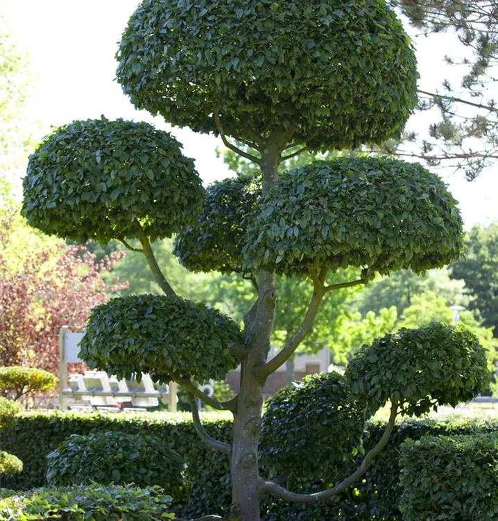 Dunkelgraue, glatte Rinde macht diese Pflanze zu einem Blickfang in jedem Garten.
