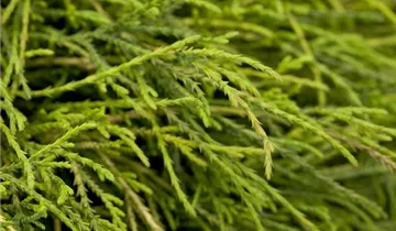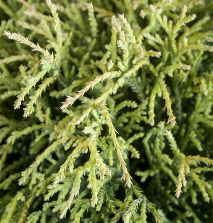 Sehr dekorativ. Die Gelbe Fadenzypresse 'Sungold' ist immergrün. Ihre Nadeln sind goldgelb, weich, schuppenförmig.
