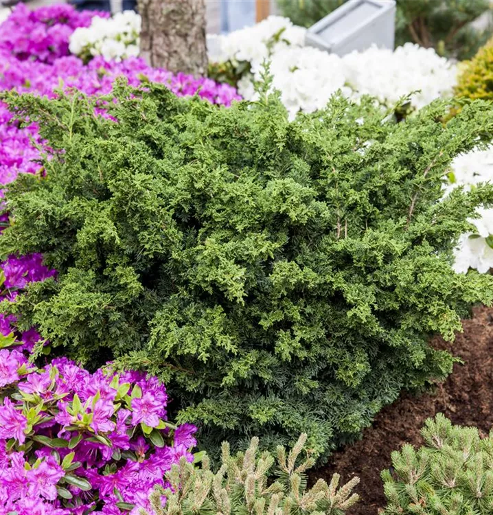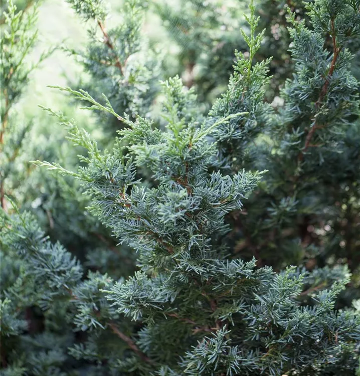 Der Chinesische Wacholder 'Blaauw' ist immergrün. Seine Nadeln sind blau-grau, schuppenförmig.