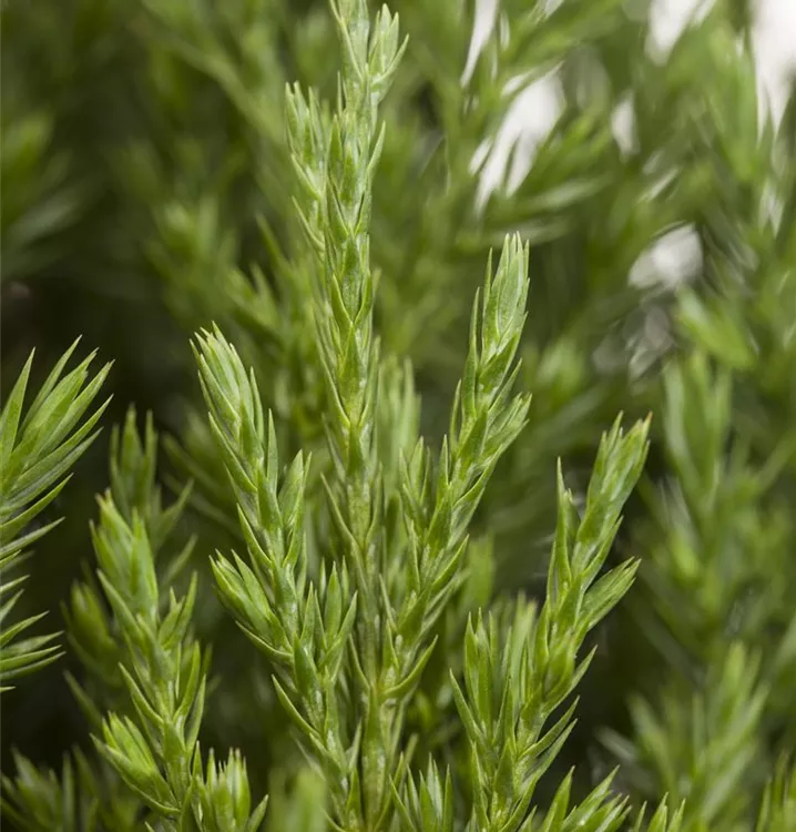 Der Blaue Kegel-Mooswacholder 'Stricta' ist immergrün. Seine Nadeln sind blau-grün.