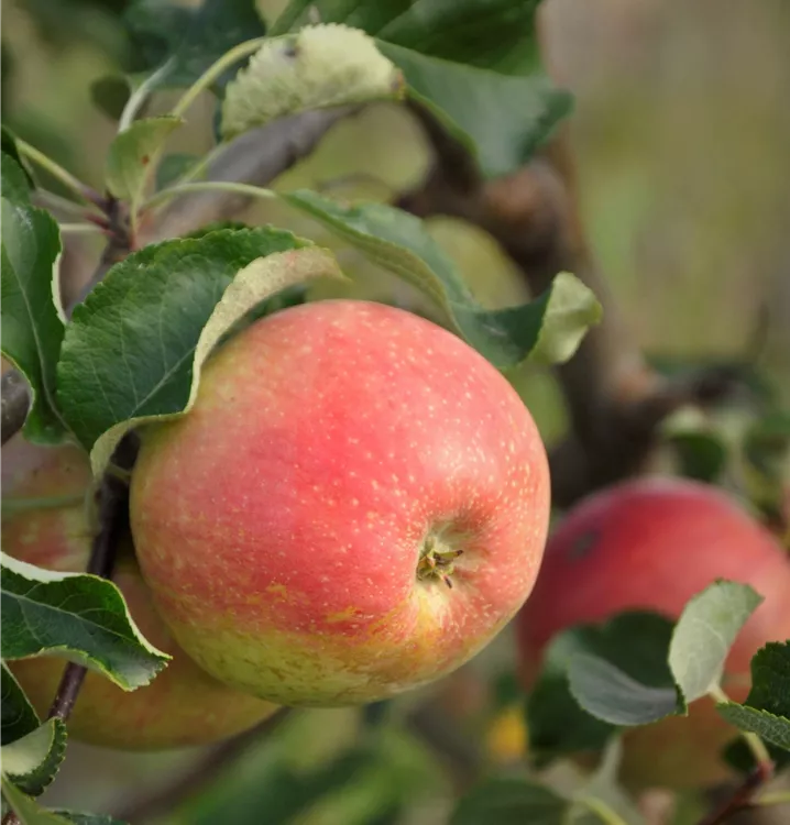 Der Apfel 'Resi'(s) (Malus domestica) bildet rote Früchte. Sie haben einen süß-säuerlichen Geschmack. Für eine ertragreiche Ernte ab September schaffen durchlässiger, nährstoffreicher Boden und ein sonniger bis halbschattiger Standort optimale Bedingungen. Auch seine hellrosafarbenen Blüten sind eine schöne Erscheinung.
