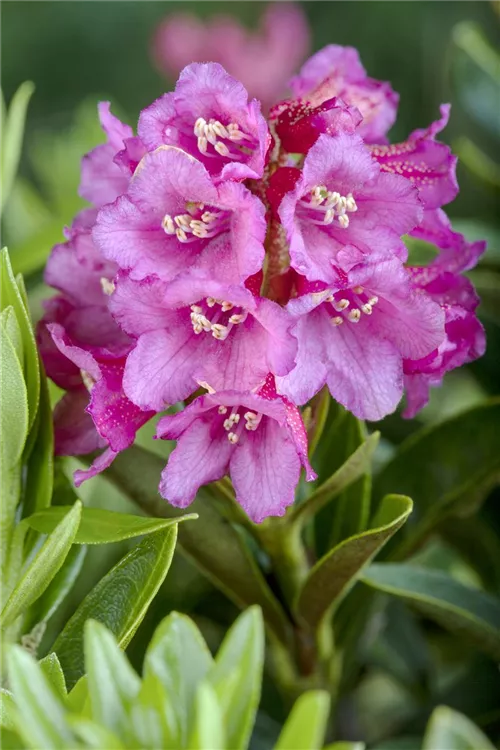 Der Rhododendron ferrugineum (Rhododendron ferrugineum) bringt von Anfang Juni bis Mitte Juni ein wahres Blütenmeer in verschiedenen Farben (je nach Sorte) hervor. Dieses aufrecht, breit, dicht, kompakt wachsende Gehölz erreicht gewöhnlich eine Höhe von 60 - 80 cm und eine Breite von 0,8 bis 1 m. Ein halbschattiger (bis schattiger) Standort und ein humoser, kalkfreier Boden schaffen optimale Bedingungen für ein gesundes Wachstum. Der Rhododendron ferrugineum ist gut frostverträglich.