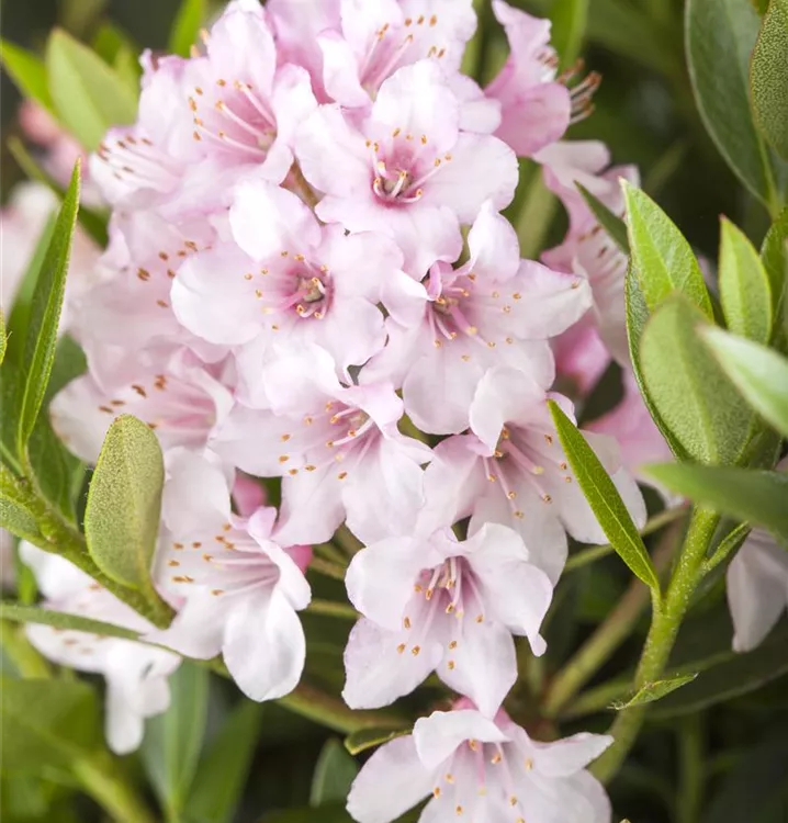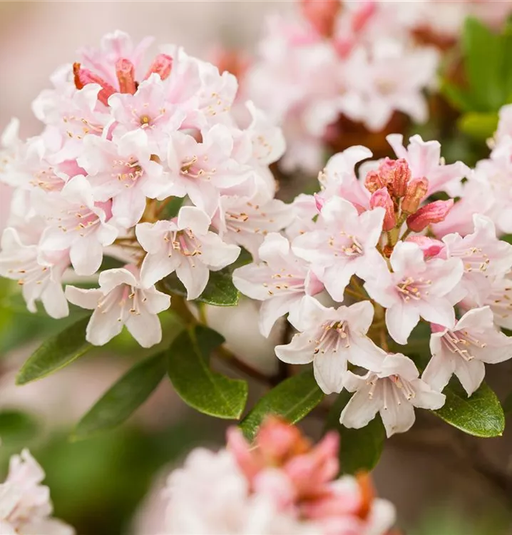 Rhododendron micranthum 'Bloombux'® bildet im Juni zahlreiche trichterförmige, rosafarbene Blüten. Diese verströmen einen leichten Duft.