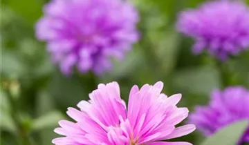 Aster novi-belgii, rosa bildet körbchenartige, rosafarbene Blüten ab September. Diese verströmen einen angenehmen Duft.
