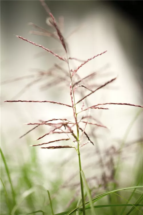 Die rot-weißen Blüten des Garten-Chinaschilf erscheinen in Rispen von August bis Oktober.