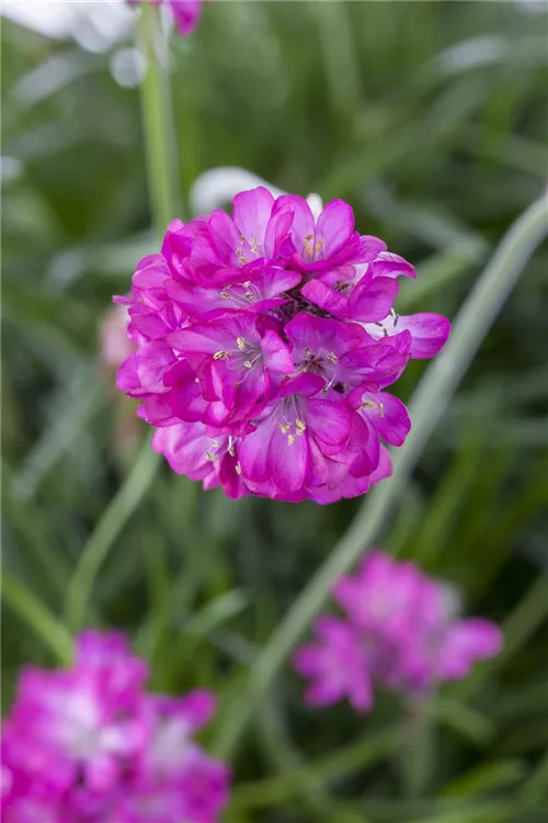 Armeria maritima, rot bildet ballförmige, rote Blüten ab Mai.